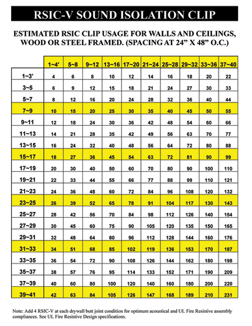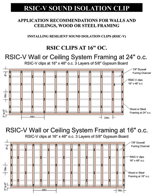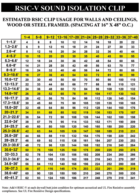Resilient Sound Isolation Clips (RSIC-V) shall be 48 inches maximum on center. (horizontal)